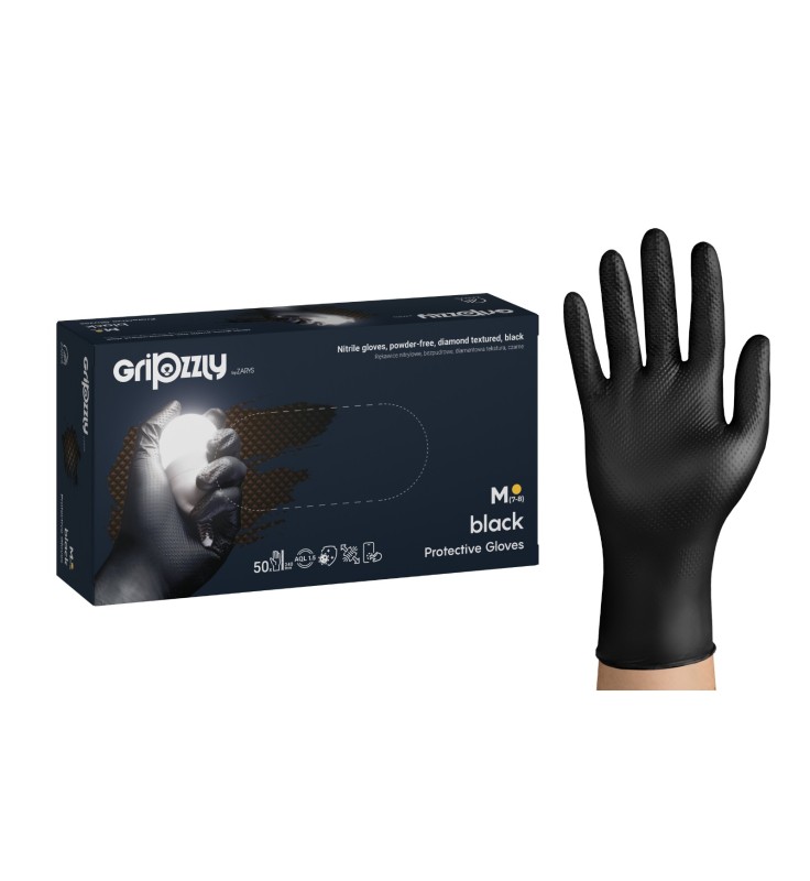 Manusi nitril negru textura diamantata Gripzzly
